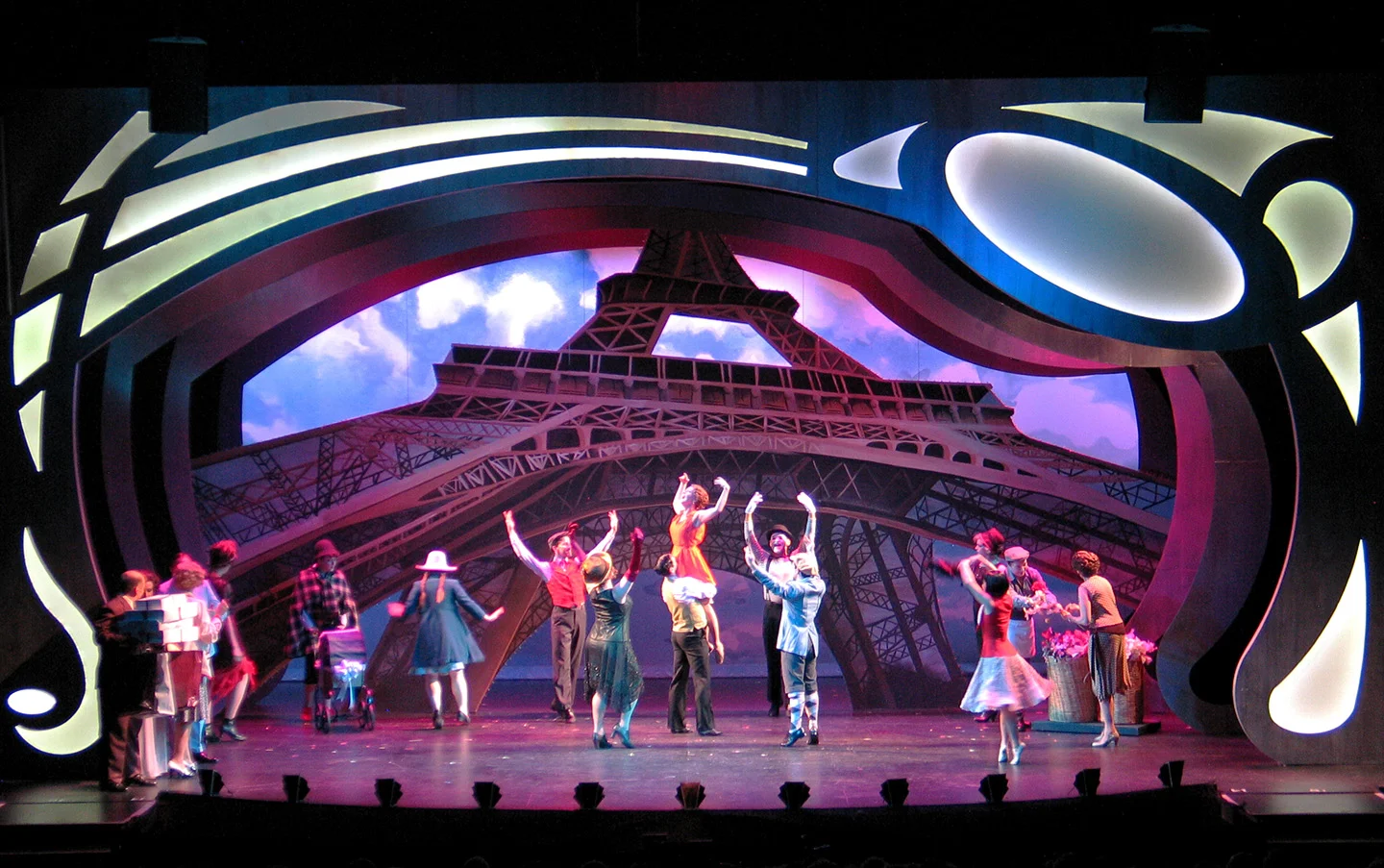 “Czerton Lim’s dazzling sets, all within a series of swirling Art Deco frames and magically lit by Adam Frank, are some of the most stunning seen here in years. The cruise ship Ile de France, both dockside and deckside; luxurious staterooms and ballrooms; the streets of Paris and the Eiffel Tower itself - simply breathtaking.”