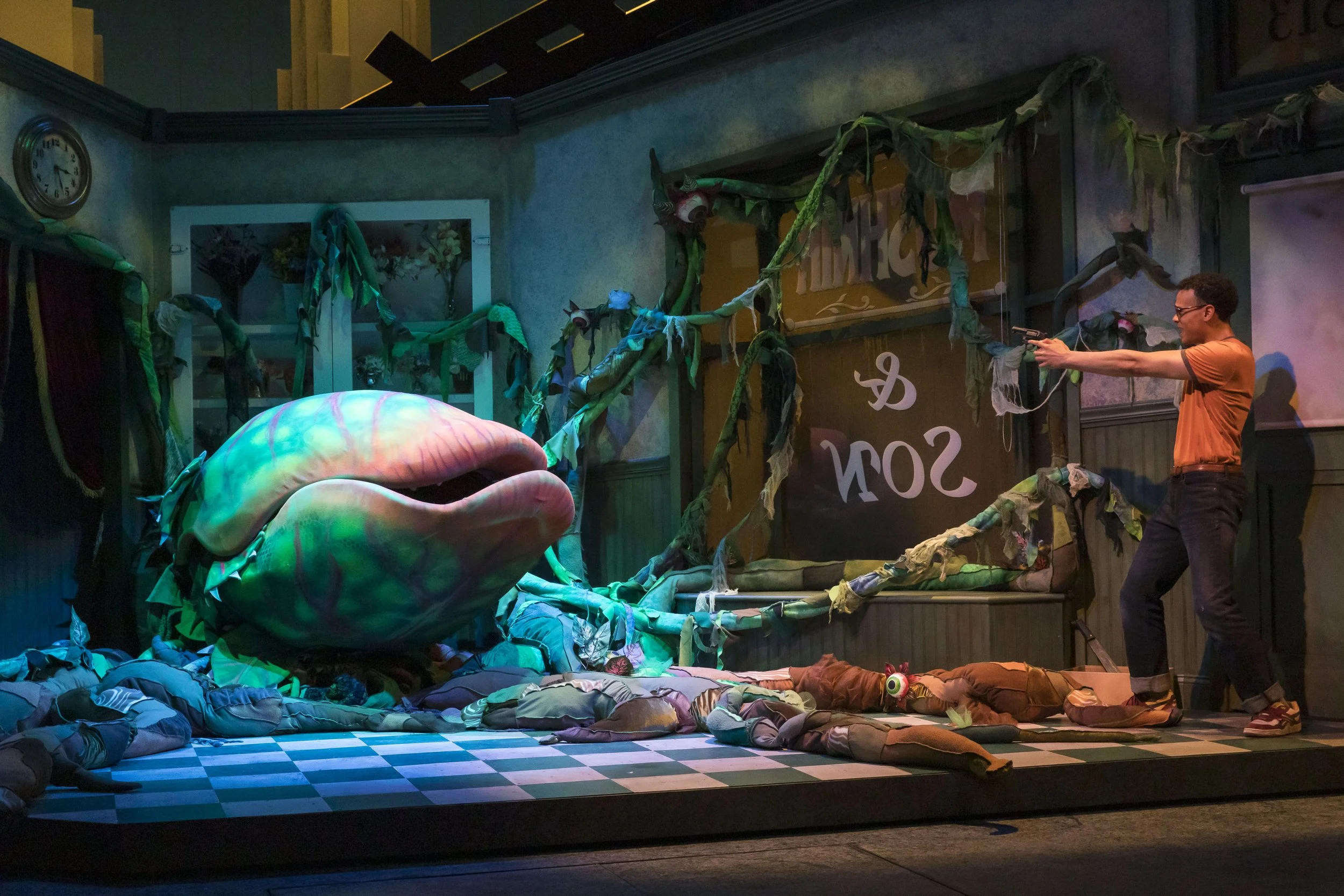“Czerton Lim's set design signals the wry turn the show takes immediately in depicting what urban life at the low end involves. The flower shop and its environs suggest desolation, while skyscrapers gleam in the background. Visually, a reality we've all read about is stamped on our senses, even though its cartoonish distortion here quickly places our expectations in the realm of comedy. Those expectations are repeatedly rewarded over two acts.”